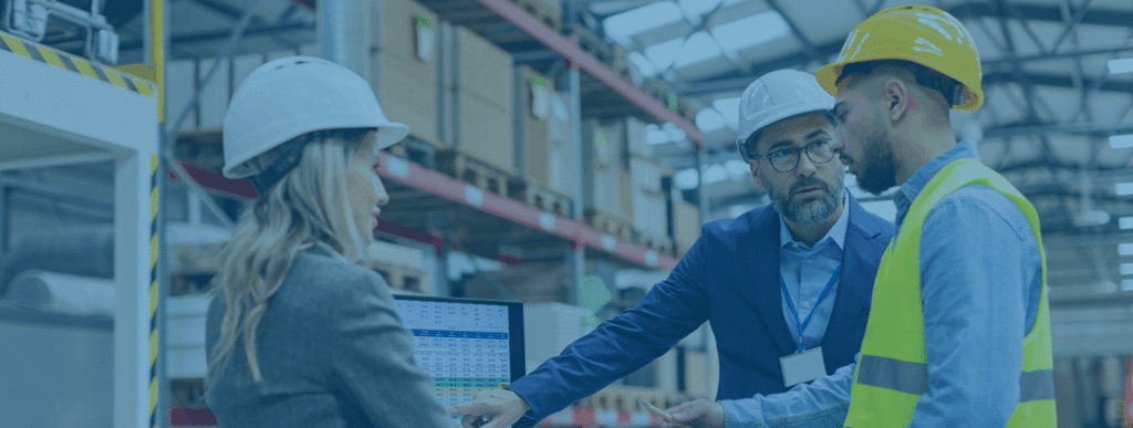 Logistics personell talking in a warehouse